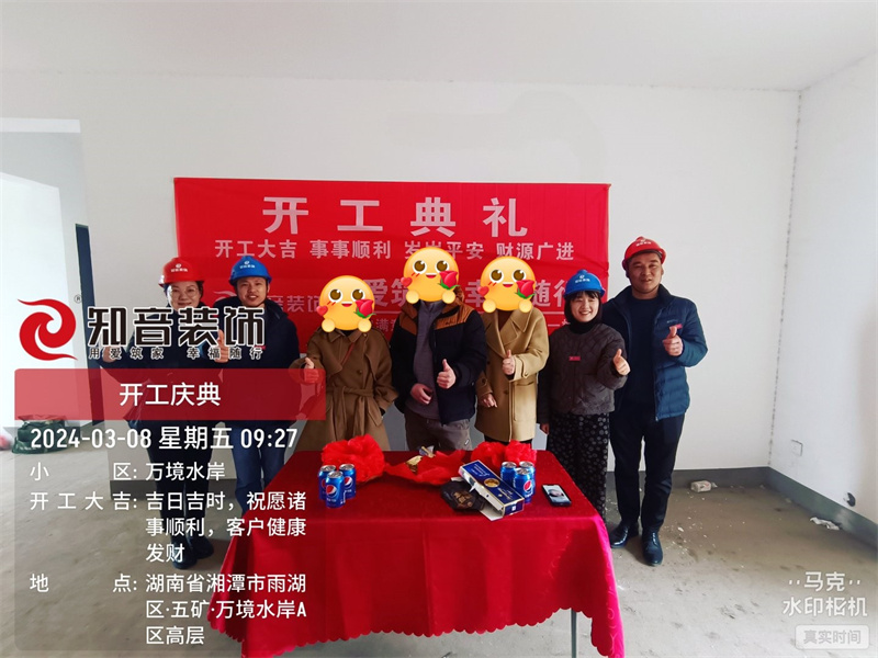 經(jīng)過原屋儉收,電梯公共過道保護,鏟除墻皮,全房放線定位后知音裝飾為每戶業(yè)主舉行隆重的開工儀式以表慶賀