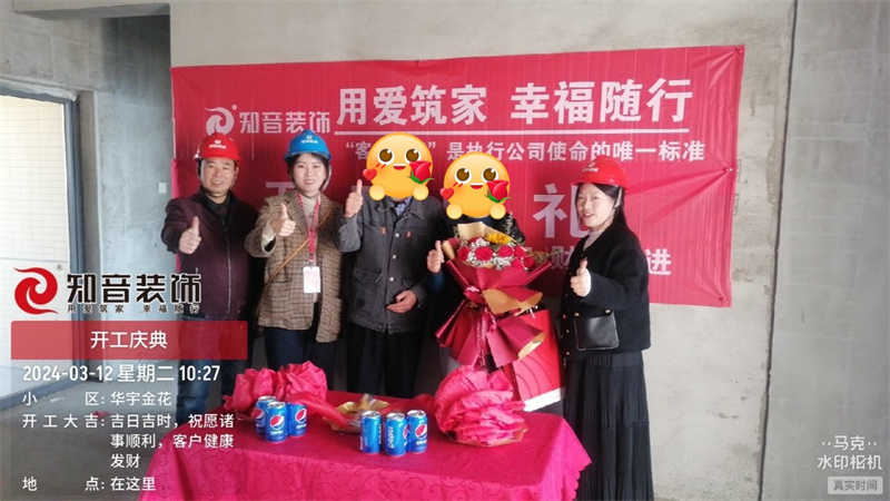 經過原屋儉收,電梯公共過道保護,鏟除墻皮,全房放線定位后知音裝飾為每戶業(yè)主舉行隆重的開工儀式以表慶賀