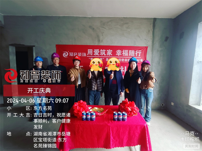 經(jīng)過原屋儉收,電梯公共過道保護(hù),鏟除墻皮,全房放線定位后知音裝飾為每戶業(yè)主舉行隆重的開工儀式以表慶賀
