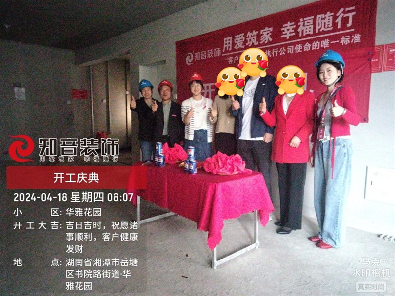 經(jīng)過原屋儉收,電梯公共過道保護,鏟除墻皮,全房放線定位后知音裝飾為每戶業(yè)主舉行隆重的開工儀式以表慶賀