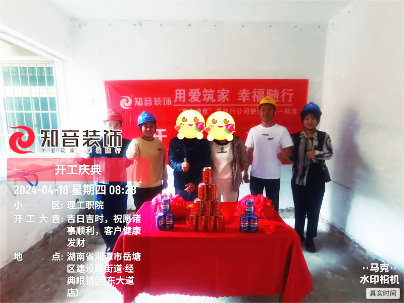 經過原屋儉收,電梯公共過道保護,鏟除墻皮,全房放線定位后知音裝飾為每戶業(yè)主舉行隆重的開工儀式以表慶賀
