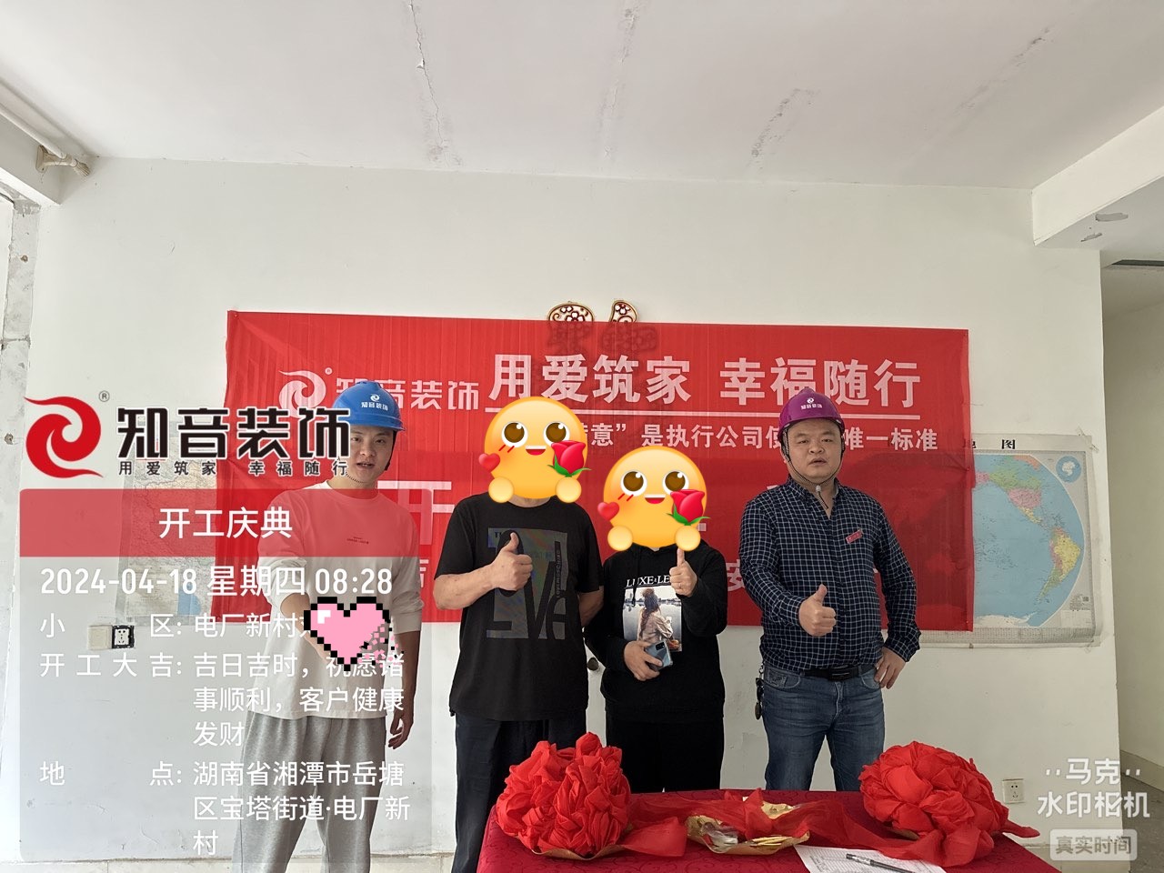 經(jīng)過(guò)原屋儉收,電梯公共過(guò)道保護(hù),鏟除墻皮,全房放線定位后知音裝飾為每戶業(yè)主舉行隆重的開工儀式以表慶賀