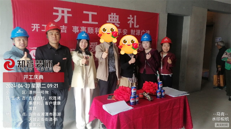 經(jīng)過(guò)原屋儉收,電梯公共過(guò)道保護(hù),鏟除墻皮,全房放線定位后知音裝飾為每戶業(yè)主舉行隆重的開(kāi)工儀式以表慶賀