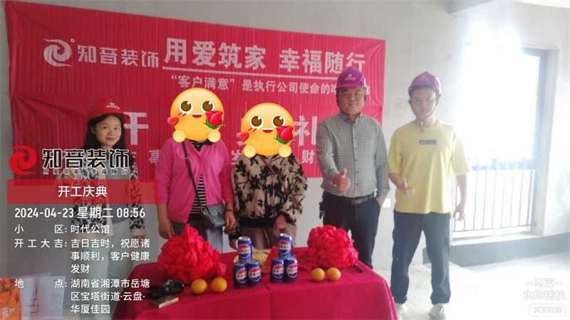 經(jīng)過原屋儉收,電梯公共過道保護(hù),鏟除墻皮,全房放線定位后知音裝飾為每戶業(yè)主舉行隆重的開工儀式以表慶賀