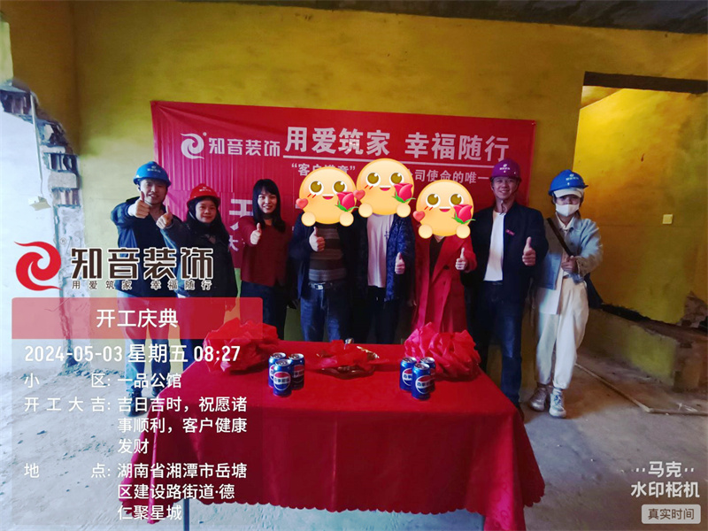 經(jīng)過(guò)原屋儉收,電梯公共過(guò)道保護(hù),鏟除墻皮,全房放線定位后知音裝飾為每戶業(yè)主舉行隆重的開工儀式以表慶賀