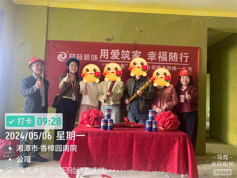 經(jīng)過原屋儉收,電梯公共過道保護(hù),鏟除墻皮,全房放線定位后知音裝飾為每戶業(yè)主舉行隆重的開工儀式以表慶賀