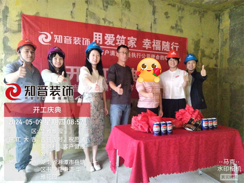 經(jīng)過(guò)原屋儉收,電梯公共過(guò)道保護(hù),鏟除墻皮,全房放線定位后知音裝飾為每戶業(yè)主舉行隆重的開(kāi)工儀式以表慶賀