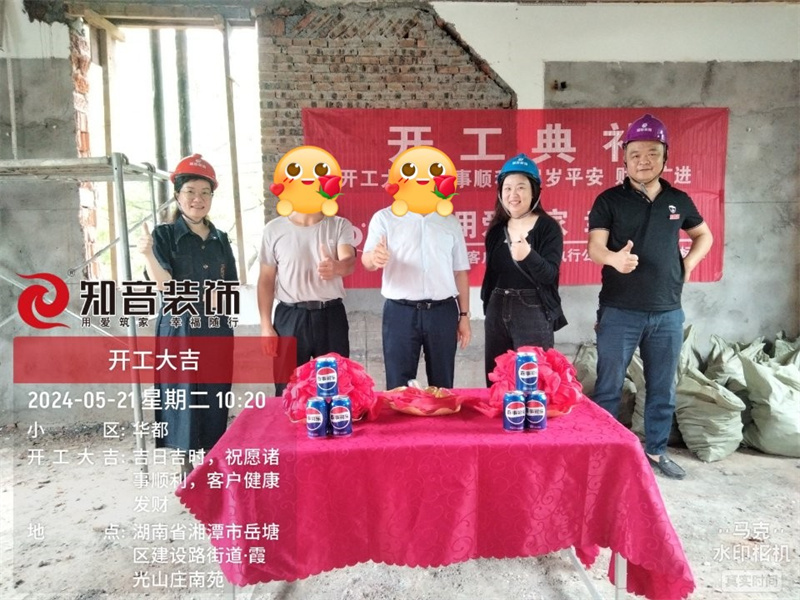 經(jīng)過原屋儉收,電梯公共過道保護(hù),鏟除墻皮,全房放線定位后知音裝飾為每戶業(yè)主舉行隆重的開工儀式以表慶賀