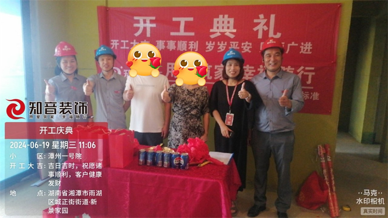 經(jīng)過原屋儉收,電梯公共過道保護,鏟除墻皮,全房放線定位后知音裝飾為每戶業(yè)主舉行隆重的開工儀式以表慶賀