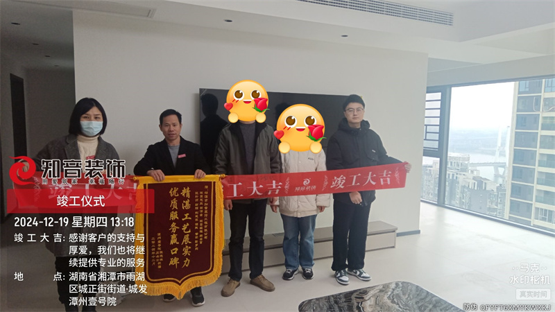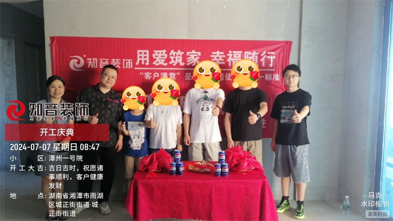 經(jīng)過原屋儉收,電梯公共過道保護,鏟除墻皮,全房放線定位后知音裝飾為每戶業(yè)主舉行隆重的開工儀式以表慶賀