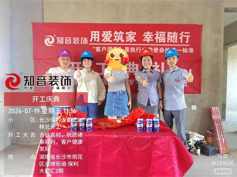 經過原屋儉收,電梯公共過道保護,鏟除墻皮,全房放線定位后知音裝飾為每戶業(yè)主舉行隆重的開工儀式以表慶賀