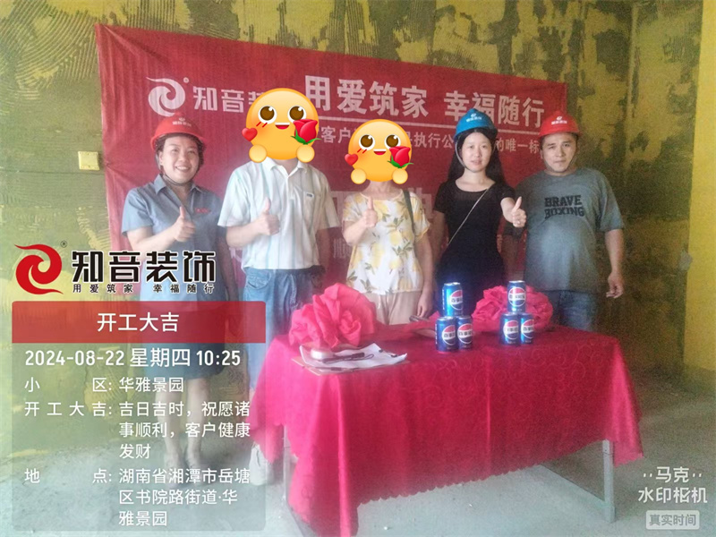 經(jīng)過原屋儉收,電梯公共過道保護(hù),鏟除墻皮,全房放線定位后知音裝飾為每戶業(yè)主舉行隆重的開工儀式以表慶賀