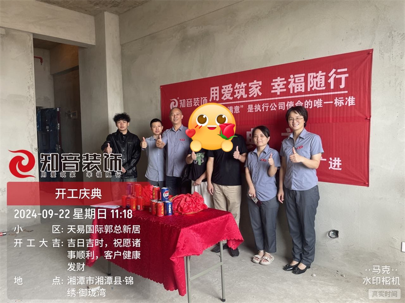 經(jīng)過原屋儉收,電梯公共過道保護(hù),鏟除墻皮,全房放線定位后知音裝飾為每戶業(yè)主舉行隆重的開工儀式以表慶賀