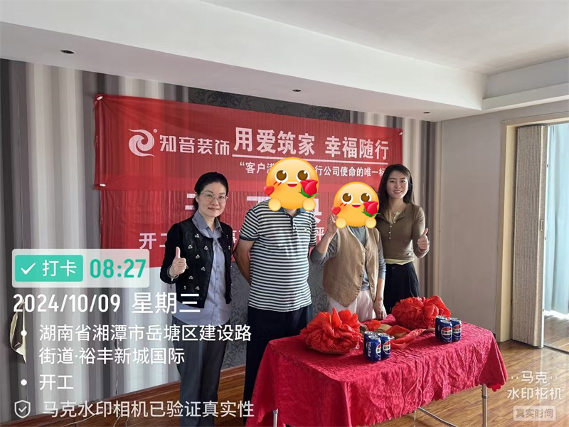經(jīng)過(guò)原屋儉收,電梯公共過(guò)道保護(hù),鏟除墻皮,全房放線定位后知音裝飾為每戶(hù)業(yè)主舉行隆重的開(kāi)工儀式以表慶賀
