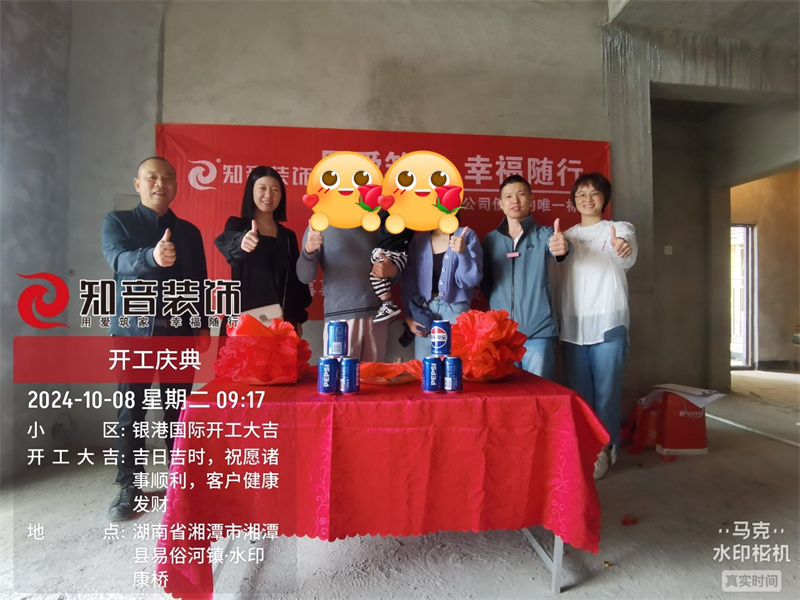 經(jīng)過原屋儉收,電梯公共過道保護(hù),鏟除墻皮,全房放線定位后知音裝飾為每戶業(yè)主舉行隆重的開工儀式以表慶賀