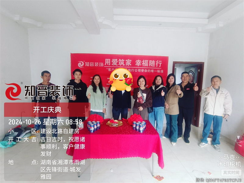 經(jīng)過原屋儉收,電梯公共過道保護(hù),鏟除墻皮,全房放線定位后知音裝飾為每戶業(yè)主舉行隆重的開工儀式以表慶賀