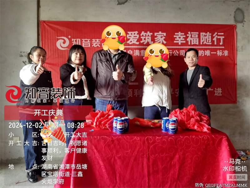 經(jīng)過原屋儉收,電梯公共過道保護,鏟除墻皮,全房放線定位后知音裝飾為每戶業(yè)主舉行隆重的開工儀式以表慶賀