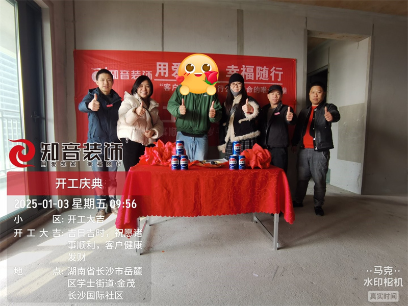 經(jīng)過原屋儉收,電梯公共過道保護(hù),鏟除墻皮,全房放線定位后知音裝飾為每戶業(yè)主舉行隆重的開工儀式以表慶賀