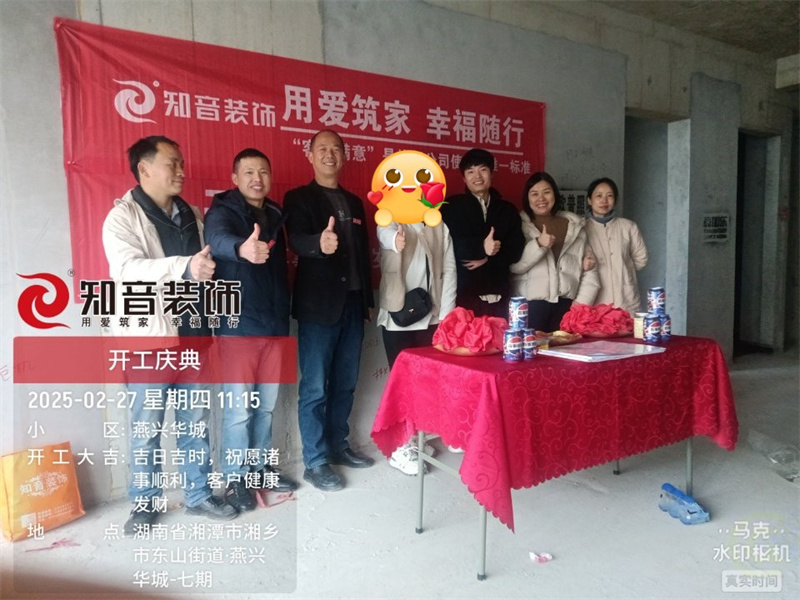 經(jīng)過原屋儉收,電梯公共過道保護,鏟除墻皮,全房放線定位后知音裝飾為每戶業(yè)主舉行隆重的開工儀式以表慶賀