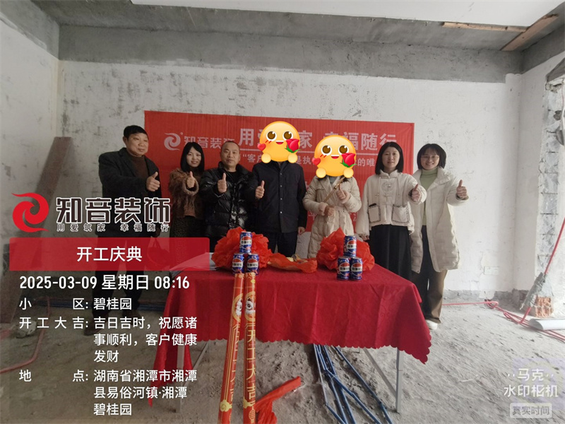 經(jīng)過原屋儉收,電梯公共過道保護,鏟除墻皮,全房放線定位后知音裝飾為每戶業(yè)主舉行隆重的開工儀式以表慶賀