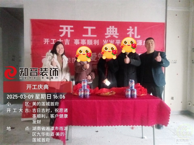 經(jīng)過原屋儉收,電梯公共過道保護(hù),鏟除墻皮,全房放線定位后知音裝飾為每戶業(yè)主舉行隆重的開工儀式以表慶賀