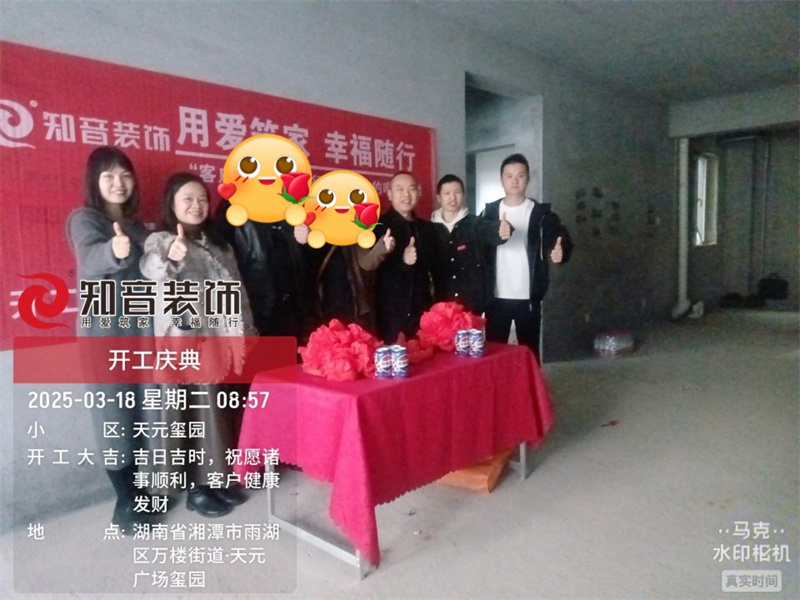 經(jīng)過原屋儉收,電梯公共過道保護,鏟除墻皮,全房放線定位后知音裝飾為每戶業(yè)主舉行隆重的開工儀式以表慶賀