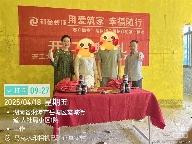 經(jīng)過原屋儉收,電梯公共過道保護(hù),鏟除墻皮,全房放線定位后知音裝飾為每戶業(yè)主舉行隆重的開工儀式以表慶賀