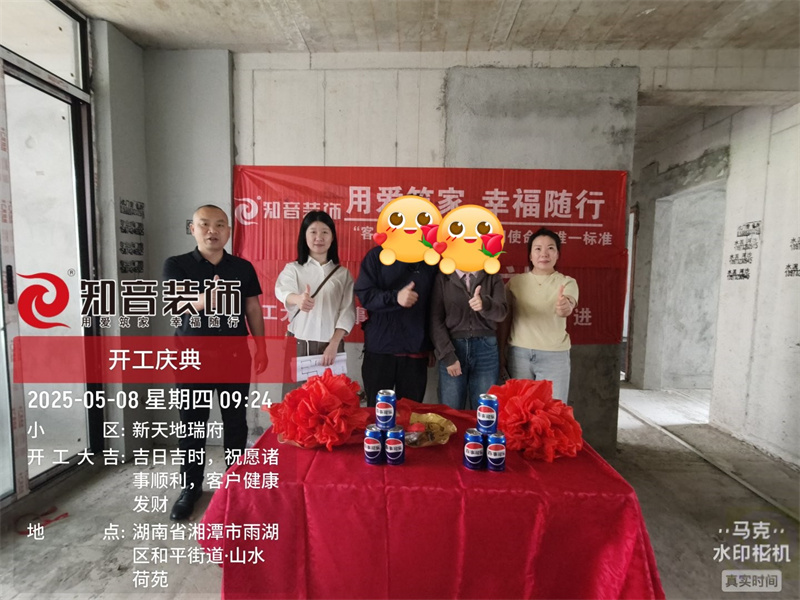 經(jīng)過原屋儉收,電梯公共過道保護(hù),鏟除墻皮,全房放線定位后知音裝飾為每戶業(yè)主舉行隆重的開工儀式以表慶賀