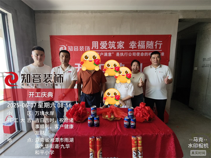 經(jīng)過(guò)原屋儉收,電梯公共過(guò)道保護(hù),鏟除墻皮,全房放線定位后知音裝飾為每戶(hù)業(yè)主舉行隆重的開(kāi)工儀式以表慶賀