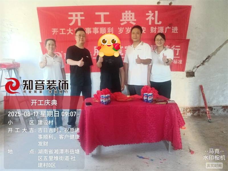 經(jīng)過原屋儉收,電梯公共過道保護,鏟除墻皮,全房放線定位后知音裝飾為每戶業(yè)主舉行隆重的開工儀式以表慶賀