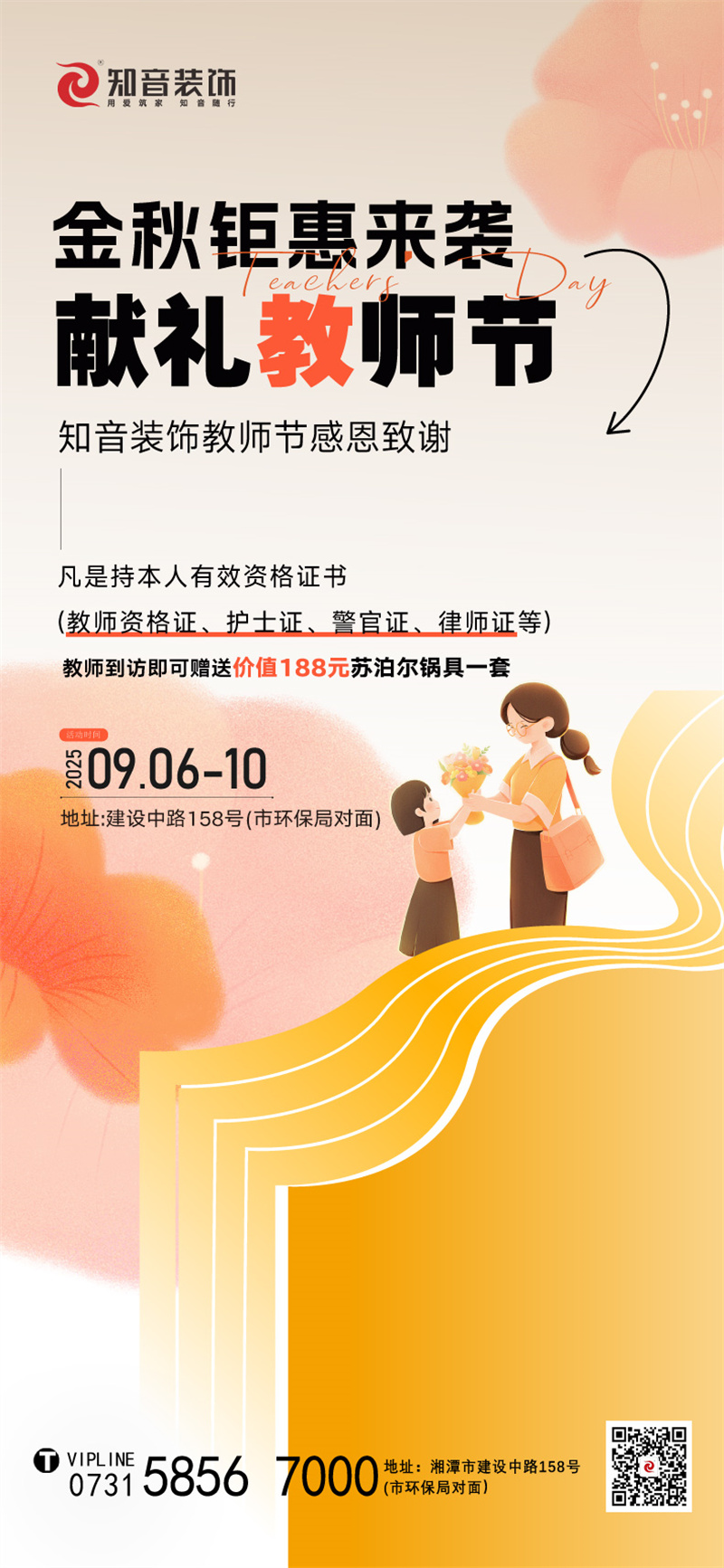 金秋鉅惠,獻(xiàn)禮教師節(jié),9月6-10日來訪即享驚喜好禮,更有裝修豪華大禮包?。?/h2>