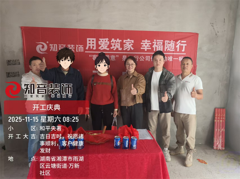 經(jīng)過(guò)原屋儉收,電梯公共過(guò)道保護(hù),鏟除墻皮,全房放線定位后知音裝飾為每戶(hù)業(yè)主舉行隆重的開(kāi)工儀式以表慶賀