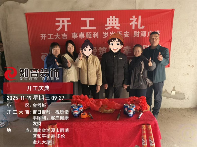 經(jīng)過(guò)原屋儉收,電梯公共過(guò)道保護(hù),鏟除墻皮,全房放線定位后知音裝飾為每戶業(yè)主舉行隆重的開(kāi)工儀式以表慶賀