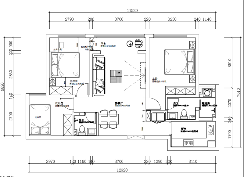| 裝修戶型 | 兩居室 | 裝修面積 | 100㎡以下 |