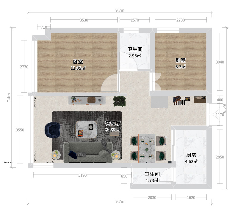 兩居室|100㎡以下|輕奢風(fēng)格