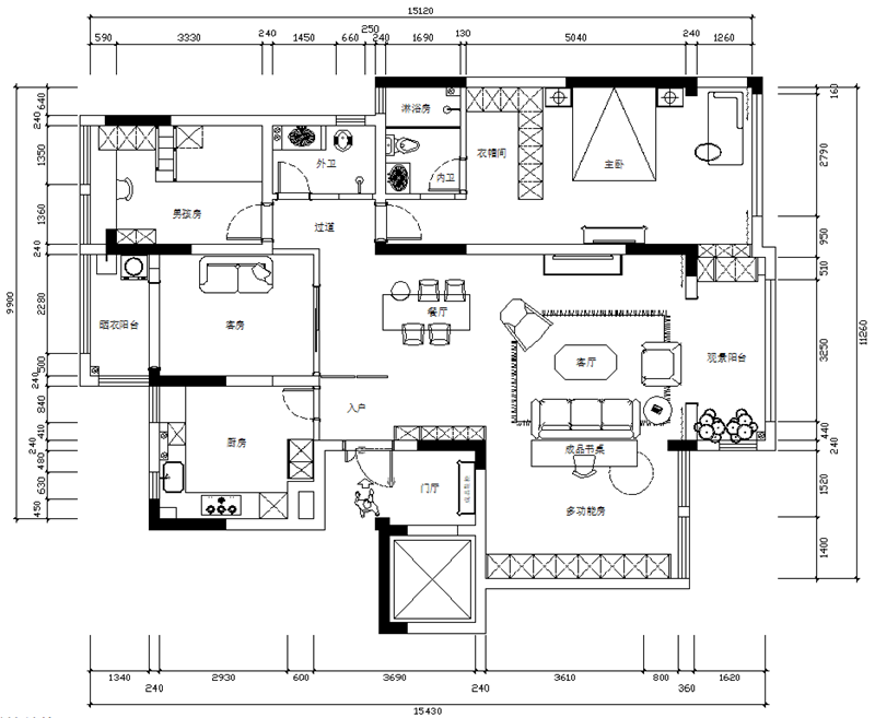 | 裝修戶型 | 三居室 | 裝修面積 | 140-200㎡ |