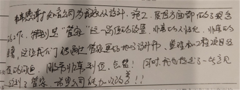 竣工驗(yàn)收單,客戶留下衷心好評!