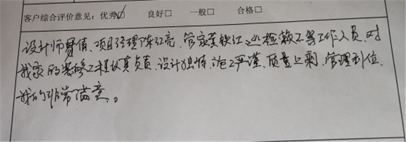 竣工驗收單,業(yè)主對我們知音作出衷心好評!客戶的滿意是我們不變的初衷。