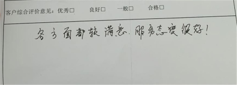 竣工驗(yàn)收單,業(yè)主對(duì)我們知音作出衷心好評(píng)!客戶的滿意是我們不變的初衷。