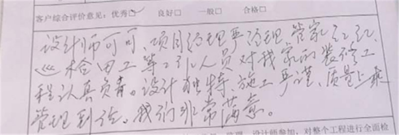 竣工驗收單,業(yè)主對我們知音作出衷心好評!客戶的滿意是我們不變的初衷。