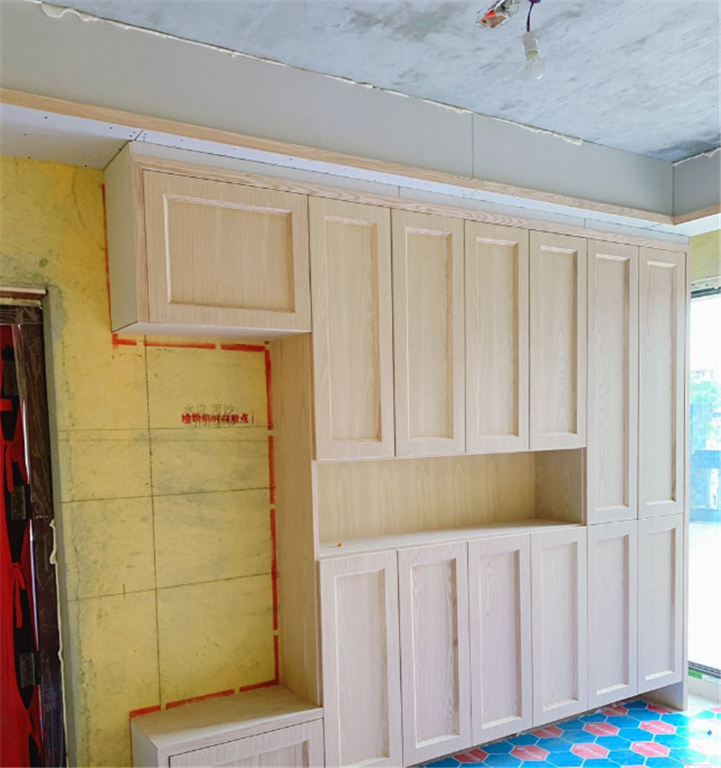 1、木工施工所制作的家具有衣柜、書(shū)柜、邊柜、酒柜等等,當(dāng)然第一步則是進(jìn)行制作框架。柜子的上下柜門(mén)分隔處的柜內(nèi)橫向木工板應(yīng)采用雙曾層加固,加強(qiáng)強(qiáng)度,避免柜體變形柜子背板應(yīng)固定牢固。