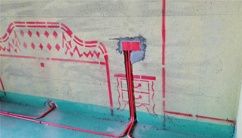 ⒉地面為地磚或水泥砂漿找平時,為點(diǎn)對點(diǎn)布線,減少彎管。