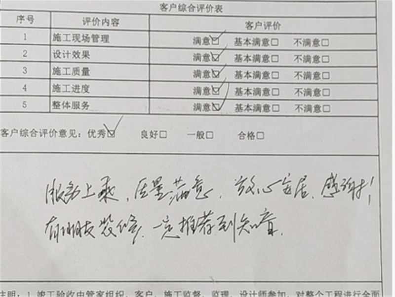 竣工驗收單,業(yè)主對我們知音作出衷心好評!客戶的滿意是我們不變的初衷。