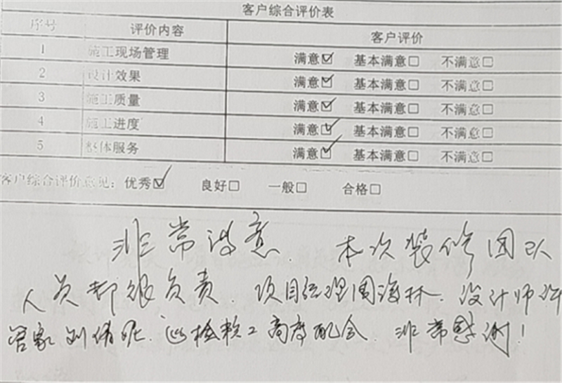 竣工驗(yàn)收單,客戶對我們知音作出衷心好評!客戶的滿意是我們不變的初衷。